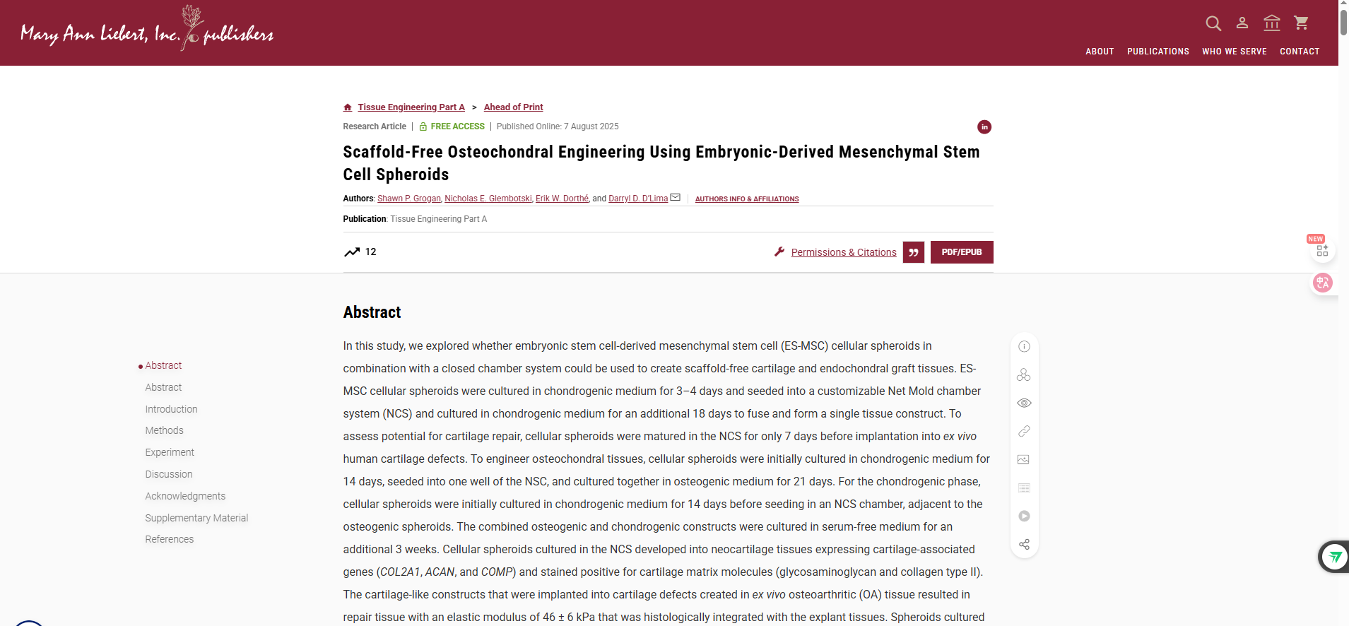 無支架骨軟骨工程新突破:胚胎干細(xì)胞球體實(shí)現(xiàn)融合性組織構(gòu)建