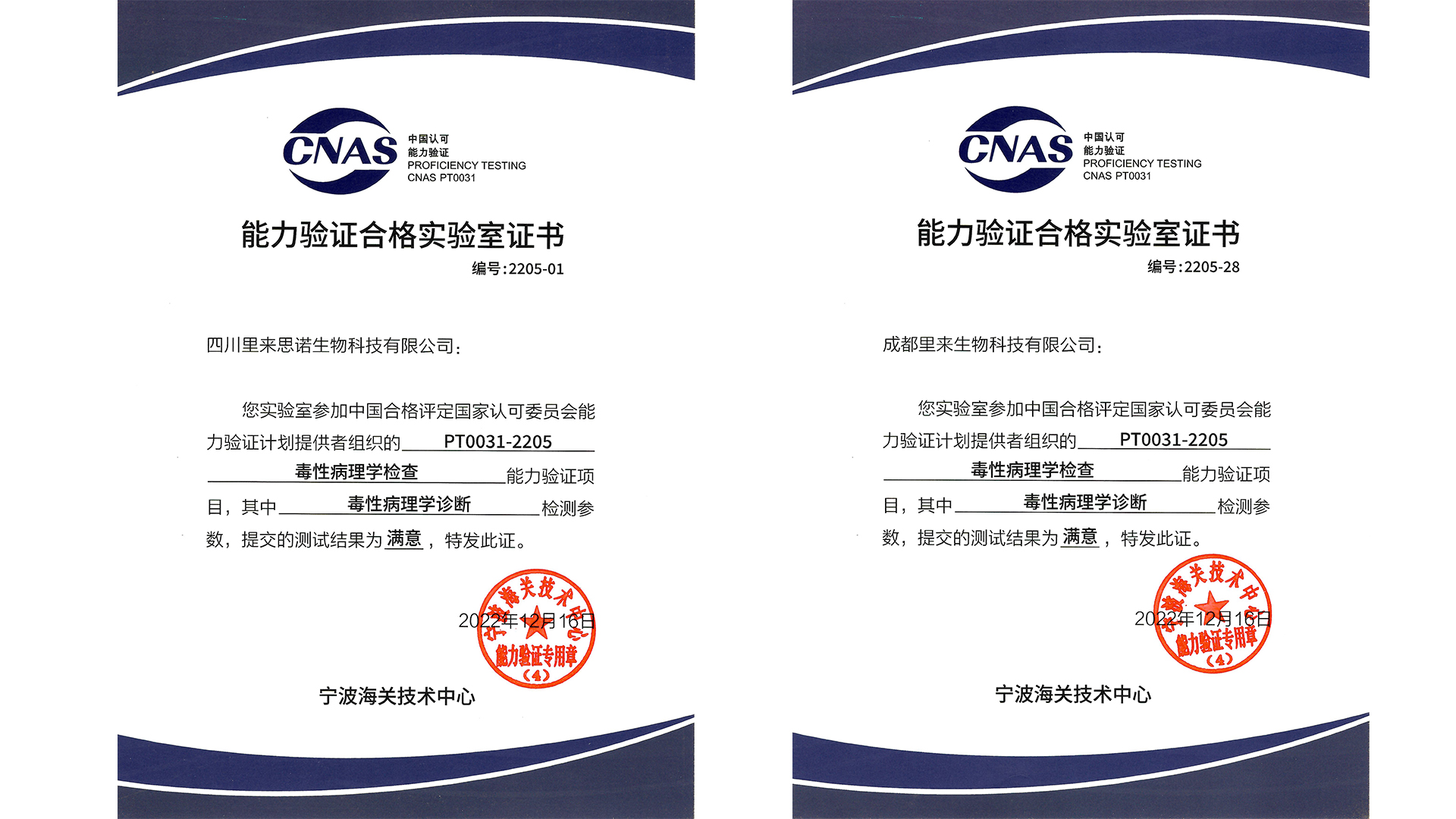 毒性病理CNAS能力驗(yàn)證滿意證書