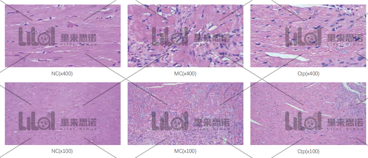 細(xì)胞浸潤(rùn)。而Ctp能明顯改善心衰大鼠細(xì)胞形態(tài)結(jié)構(gòu)、減少炎癥細(xì)胞浸潤(rùn)。