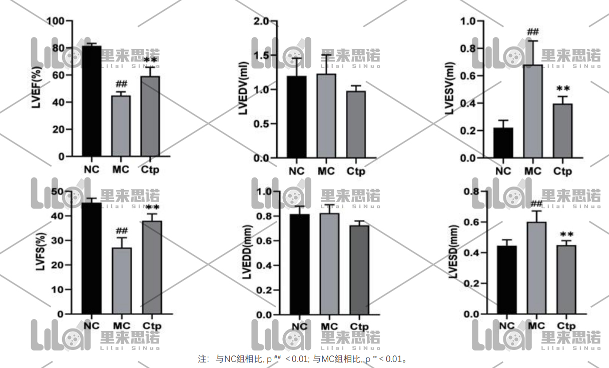 (LVFS)顯著降低;而Ctp能顯著提高心衰大鼠LVEF和LVFS,改善心衰大鼠心功能(p<0.01)。