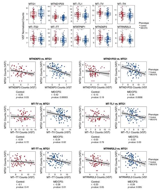 mtRNA 轉(zhuǎn)錄本與 MTG1 的表達及相關(guān)性