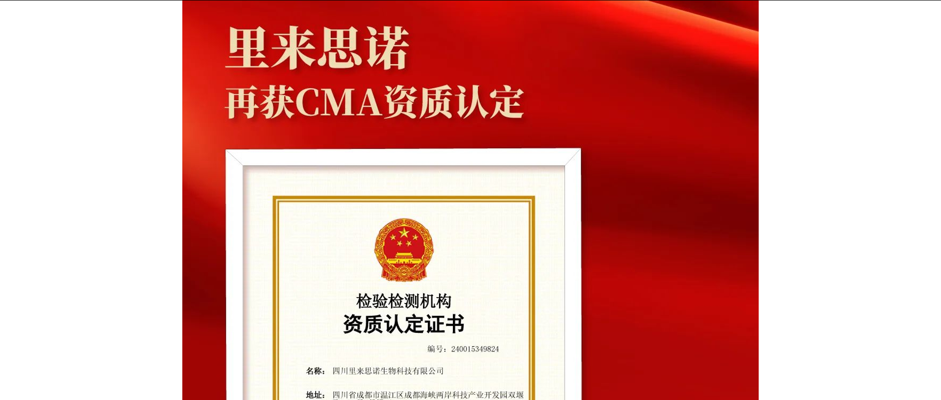 里來思諾正式獲得醫(yī)療器械和生物材料評價領(lǐng)域CMA資質(zhì)認定